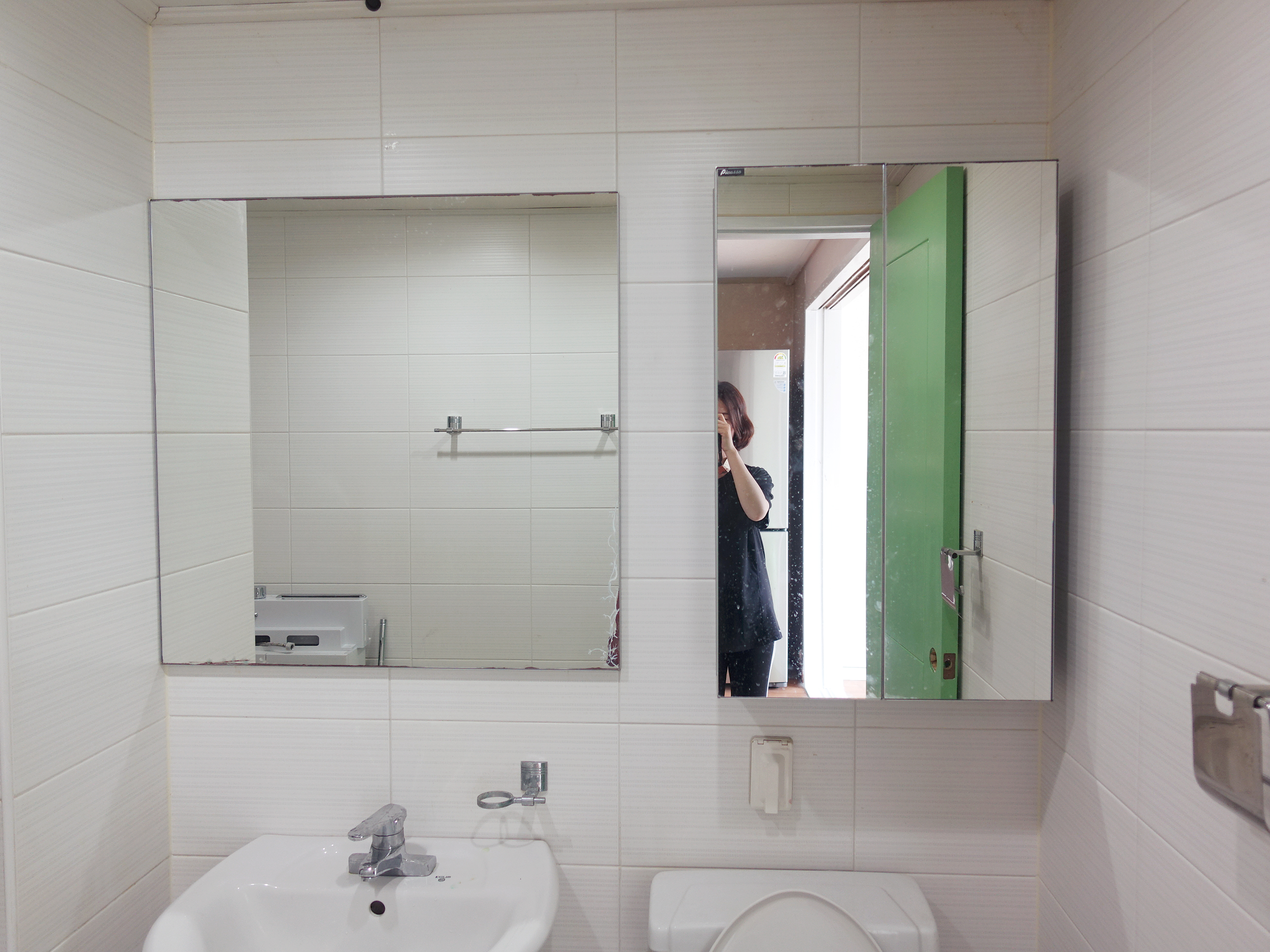 욕실거울은 테두리가 다 녹슬어있었고, 욕실장도 열때마다 끼긱소리나서 -_-