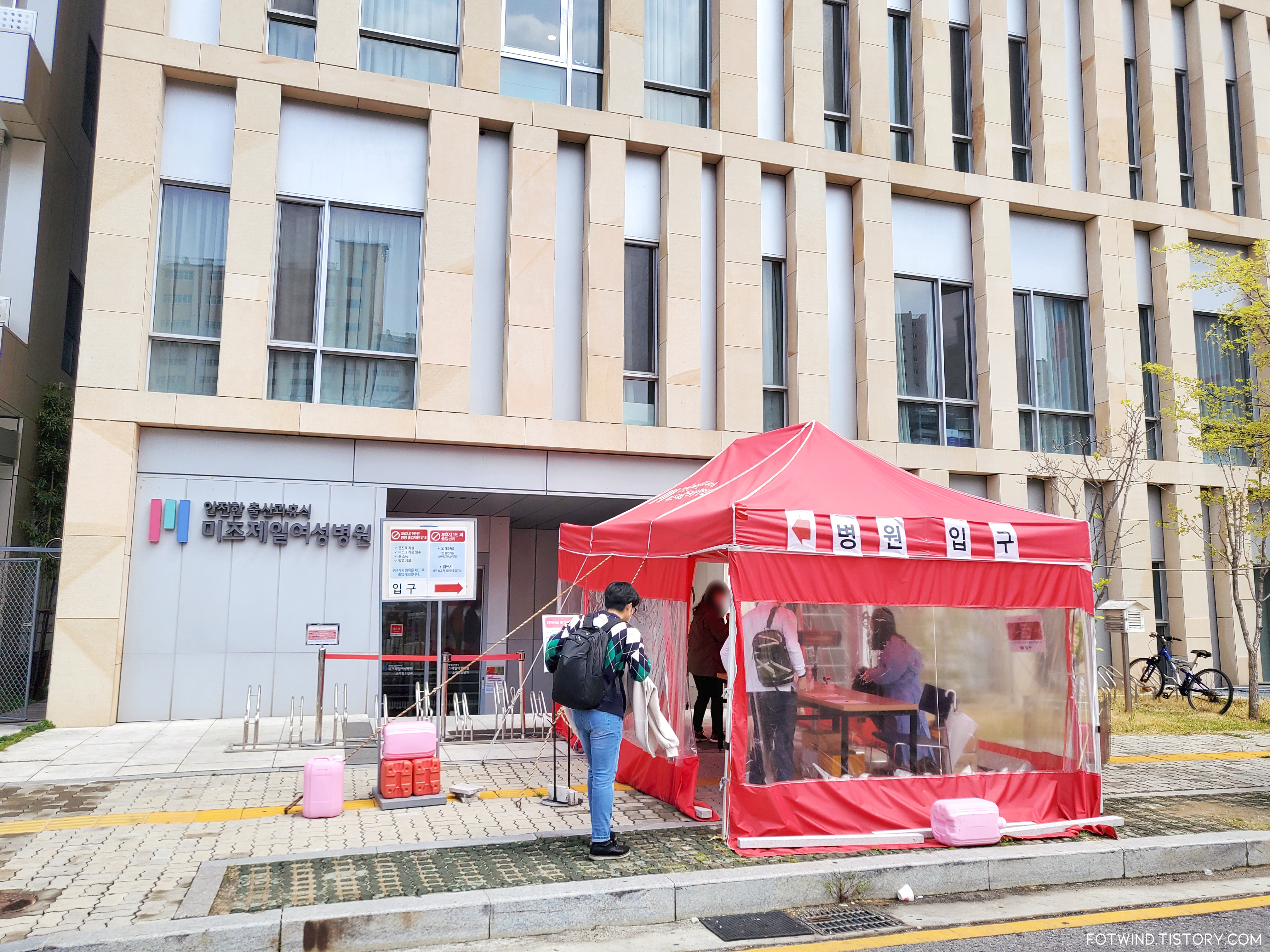 지금은 이렇게 바깥에 부스가 있지 않고, 병원내 복도에 따로 방문기록을 남기는 곳이 생겼다
