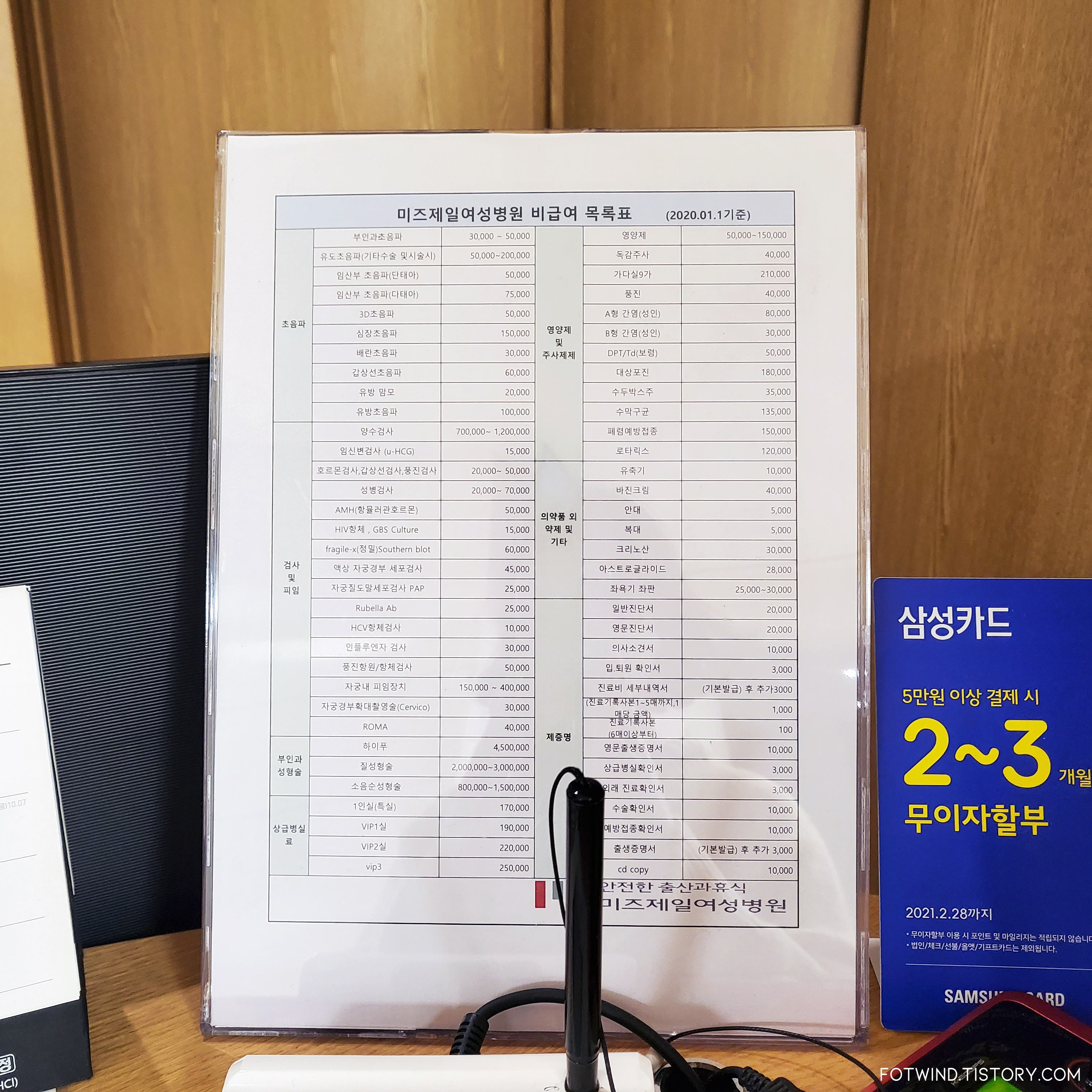 대전 미즈제일여성병원 비급여비용 목록
