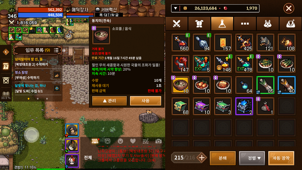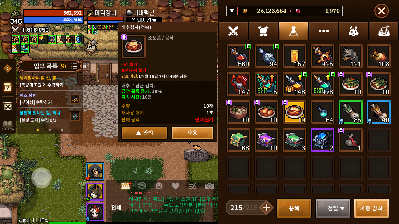 레이드할때 쓸모있는 파김치(체마 30%씩 회복),