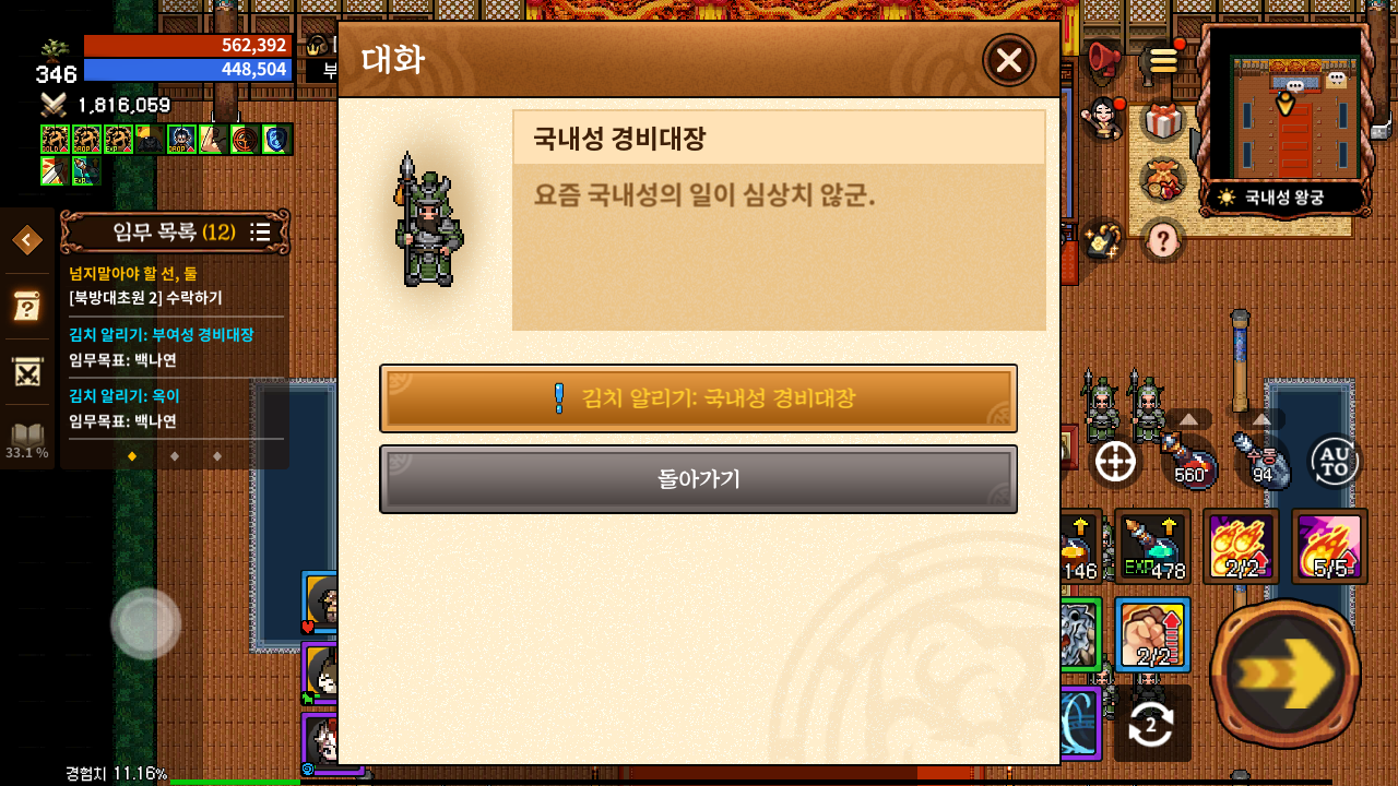 또 왼쪽에 뜨는 일일퀘스트 오늘의 김치를 클릭하면