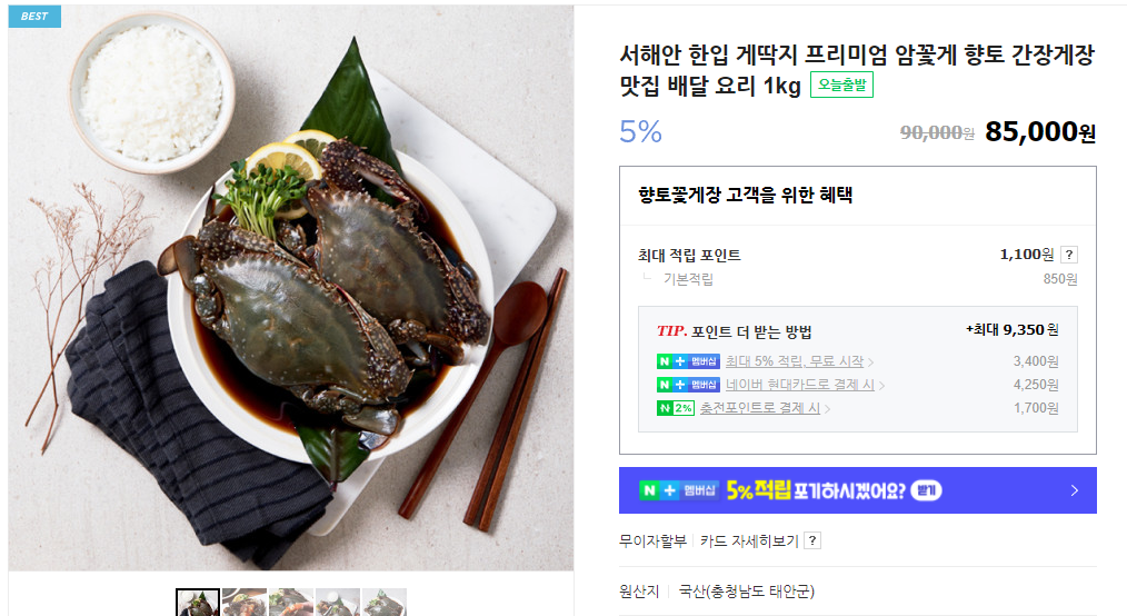 게장만 1kg 단위로 포장구매도 가능하고, 스마트스토어에서도 1kg 8만 5천원에 판매하는데,