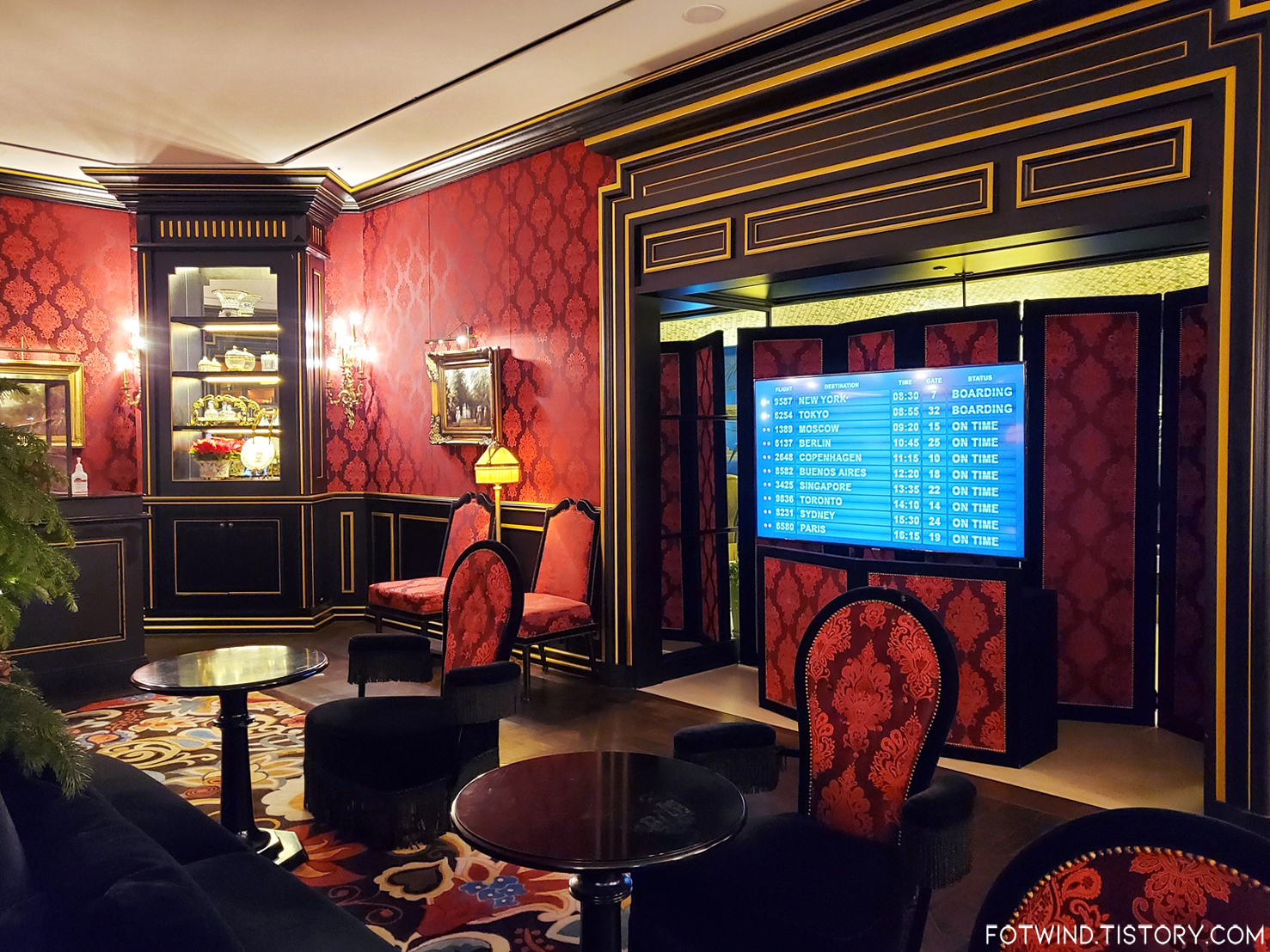 내가 갔을때는 호텔이 여행 컨셉이라 저렇게 TV에 boarding time이랑 여행영상들을 틀어주었다