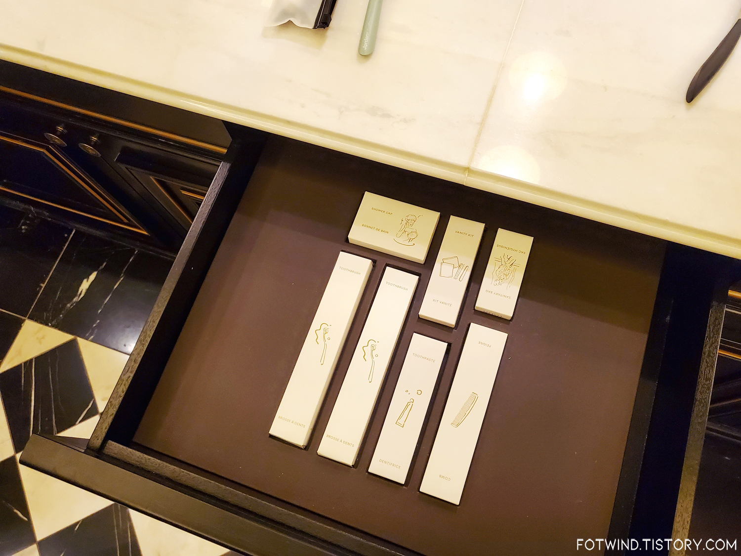 어메니티들이 각맞춰 깔끔히 정리되어있어 마음의 평화를 주는 레스케이프 호텔이다..!