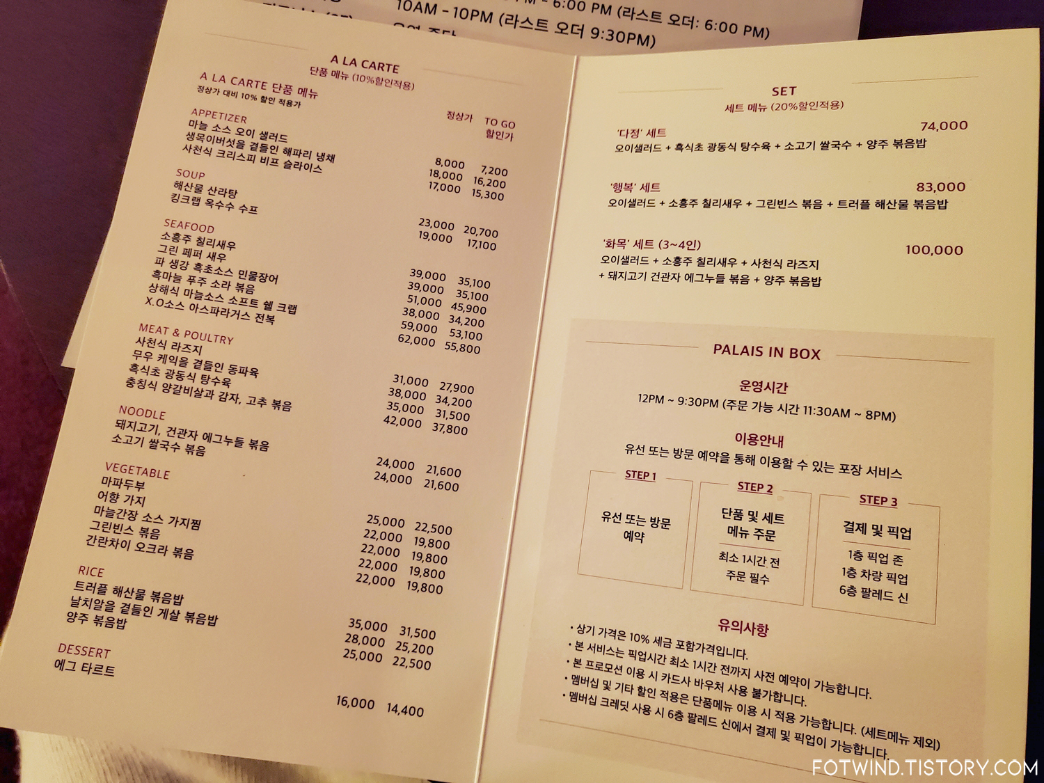 팔레드신 메뉴들도 주문 또는 포장이 가능했다!
