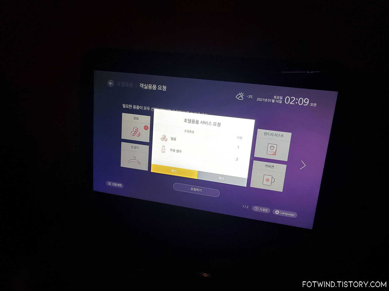 그리고 얼음이랑 생수, 옷걸이 같은 용품들도 간단하게 요청이 가능하다!!