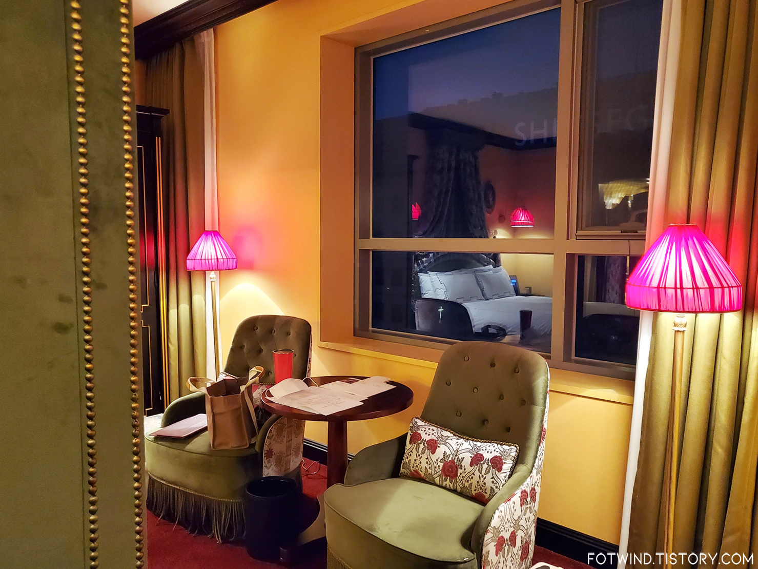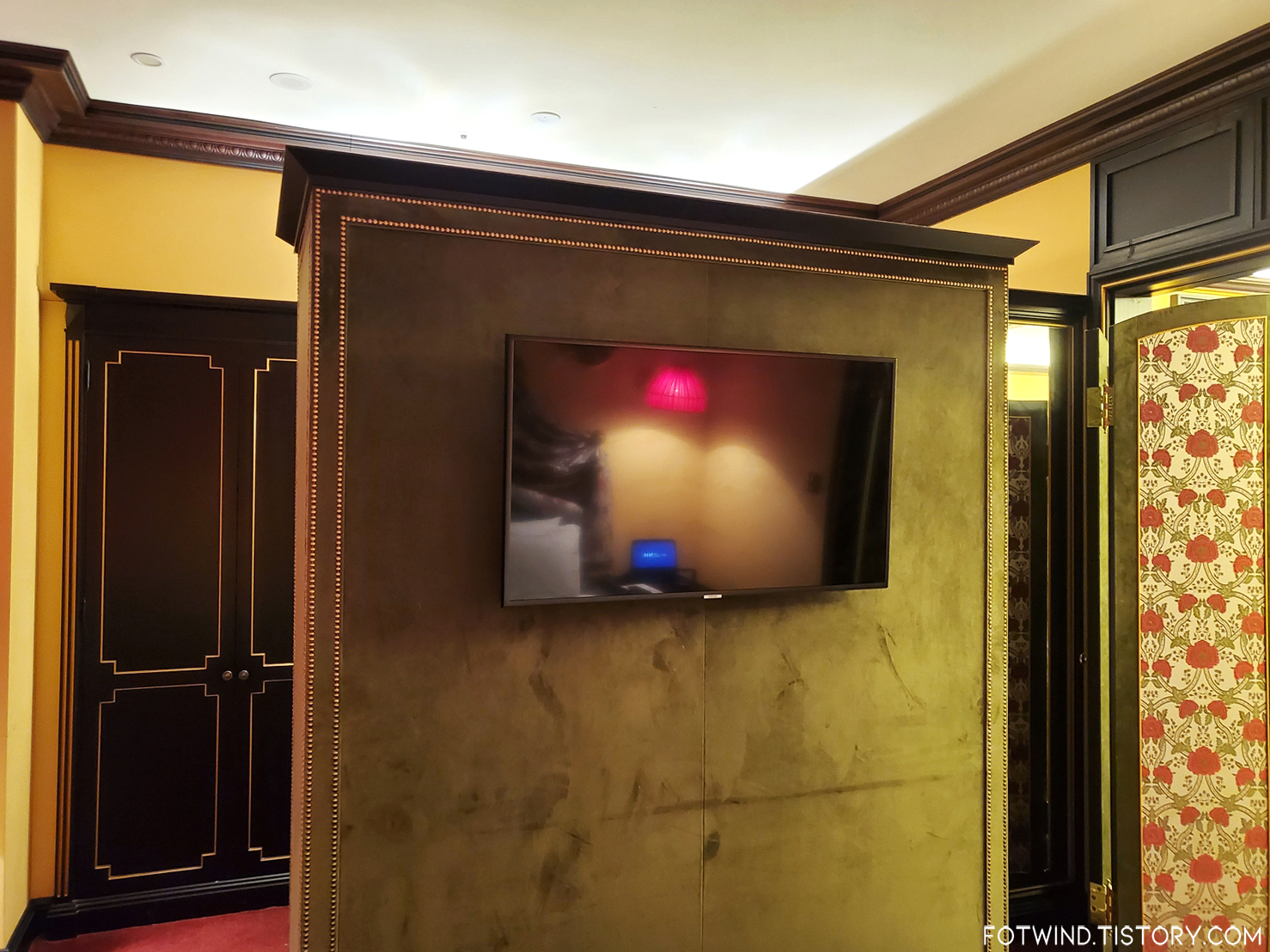 내가 홈페이지에서 본 아모르 킹룸은 붉은 색감이었는데, 받은 객실은 사진처럼 초록초록했음