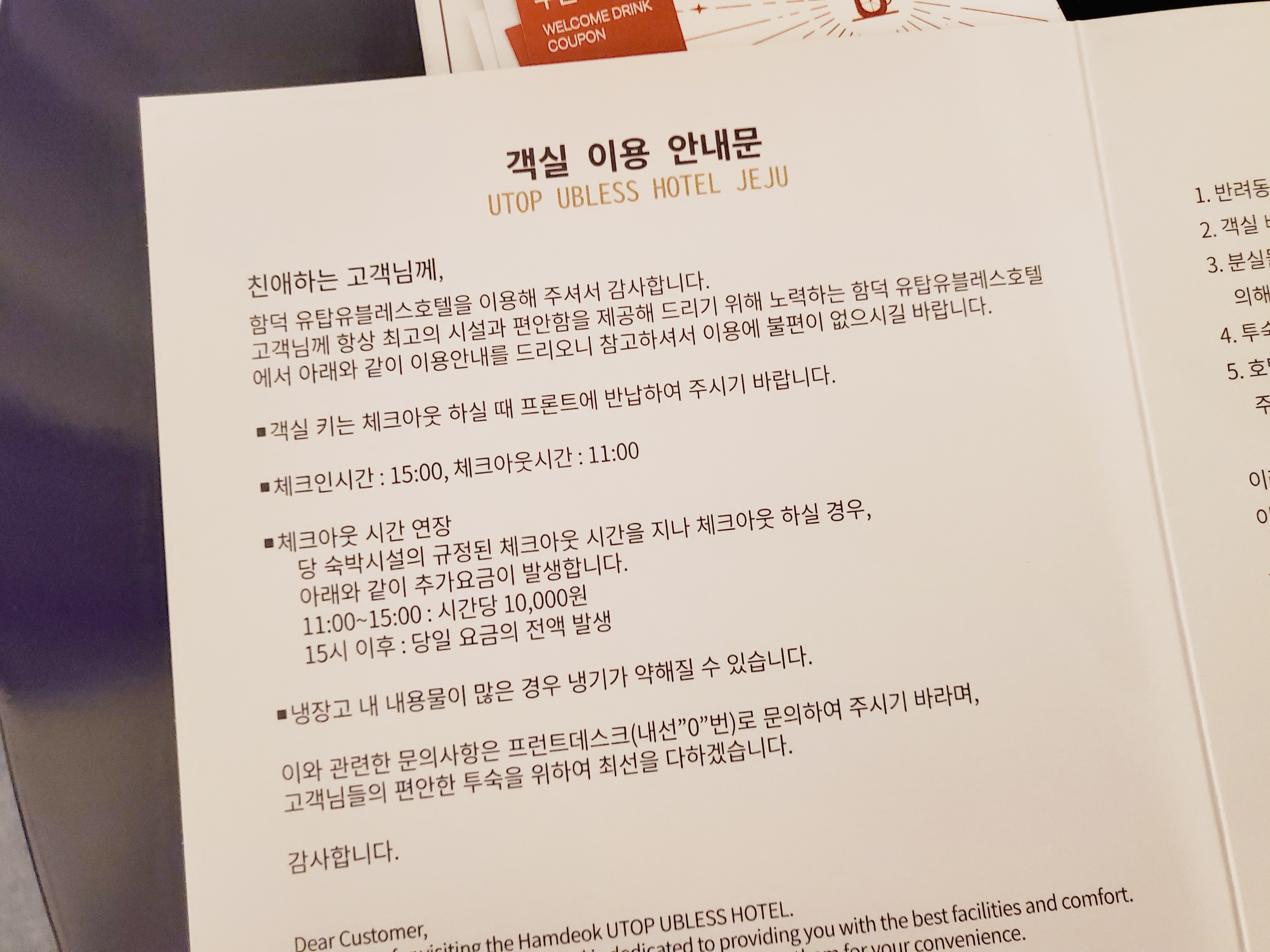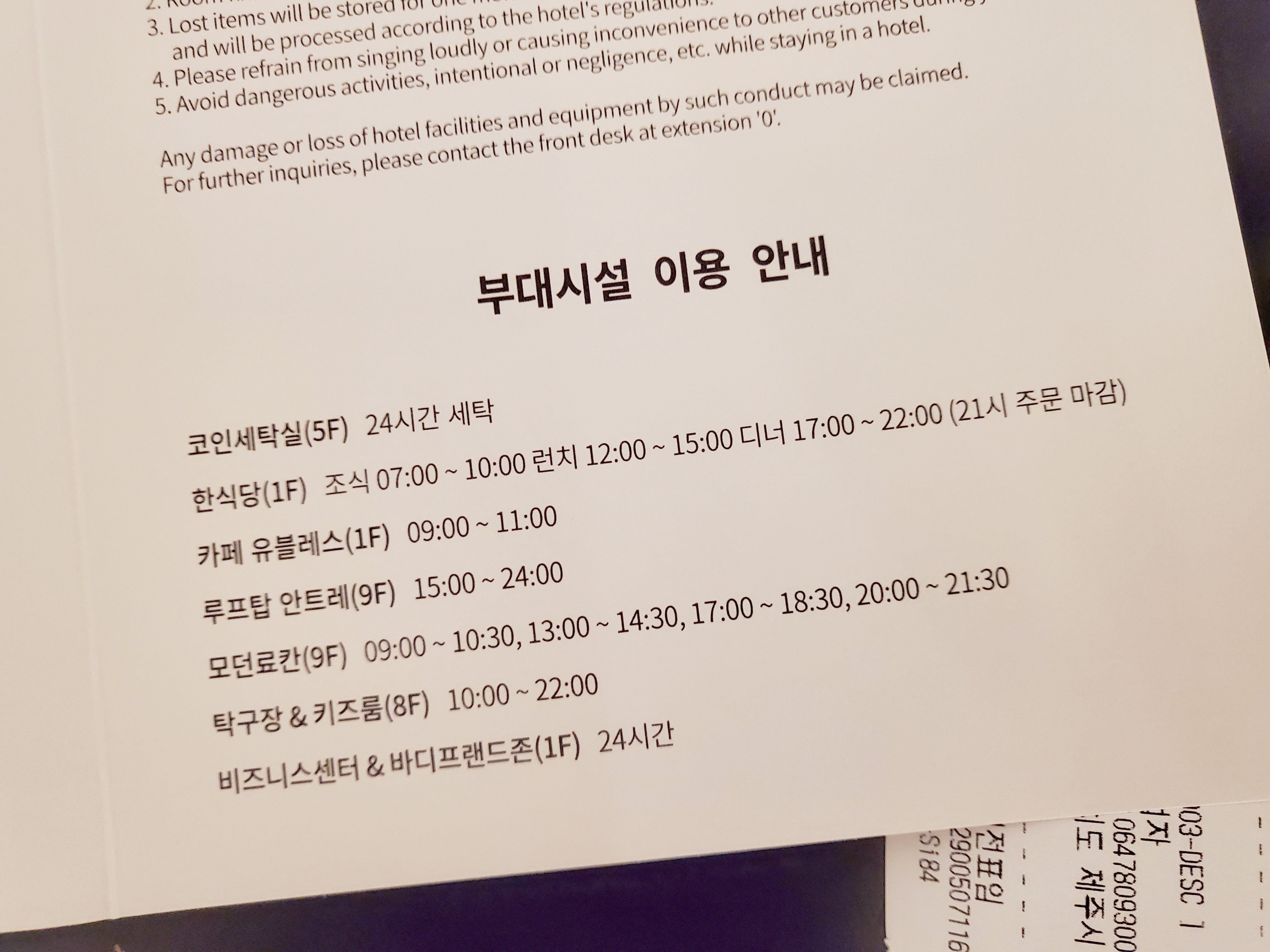 객실 및 부대시설 이용 안내문