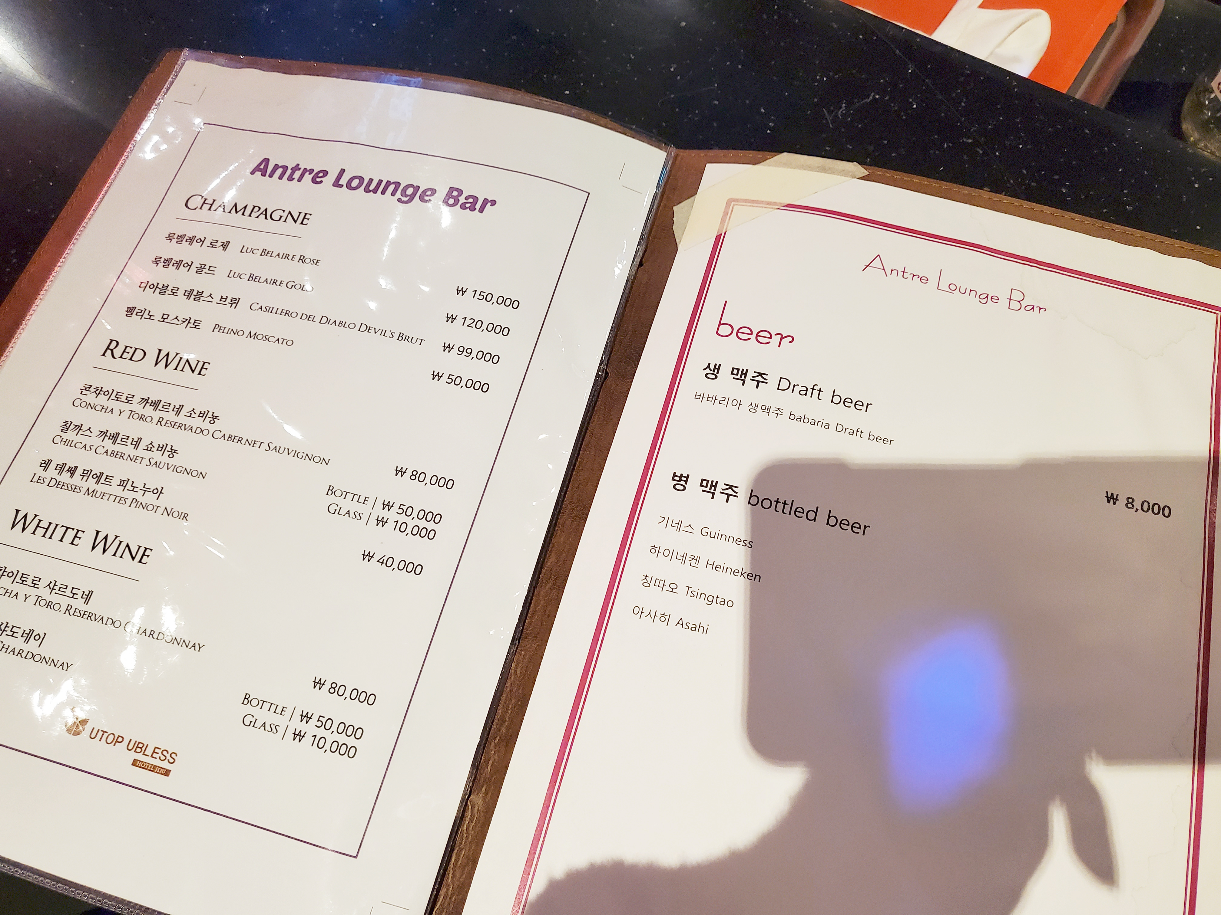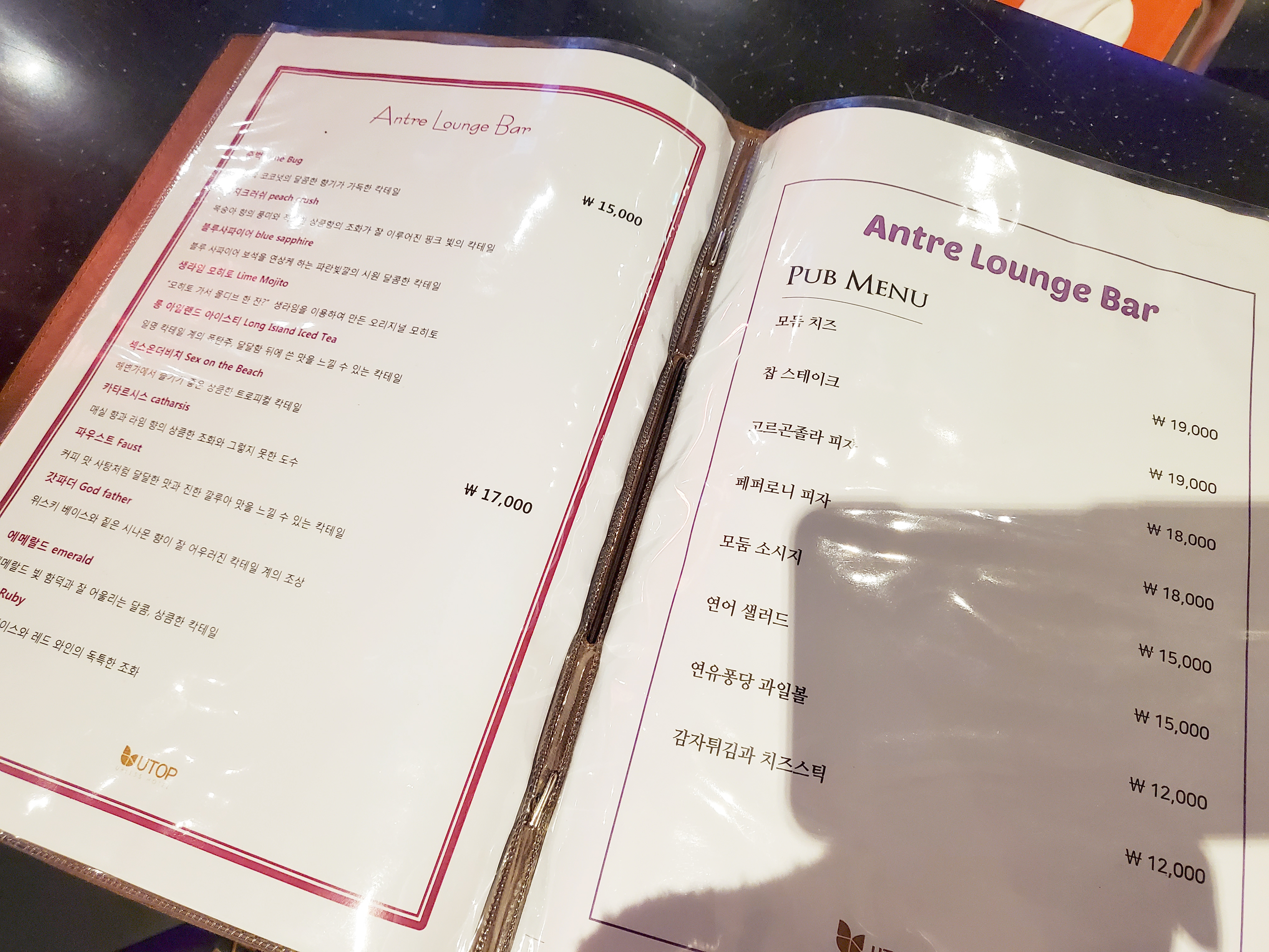 앙트레 라운지 바에서는 주류와 안주를 파는데 생각보다 가격이 저렴하다