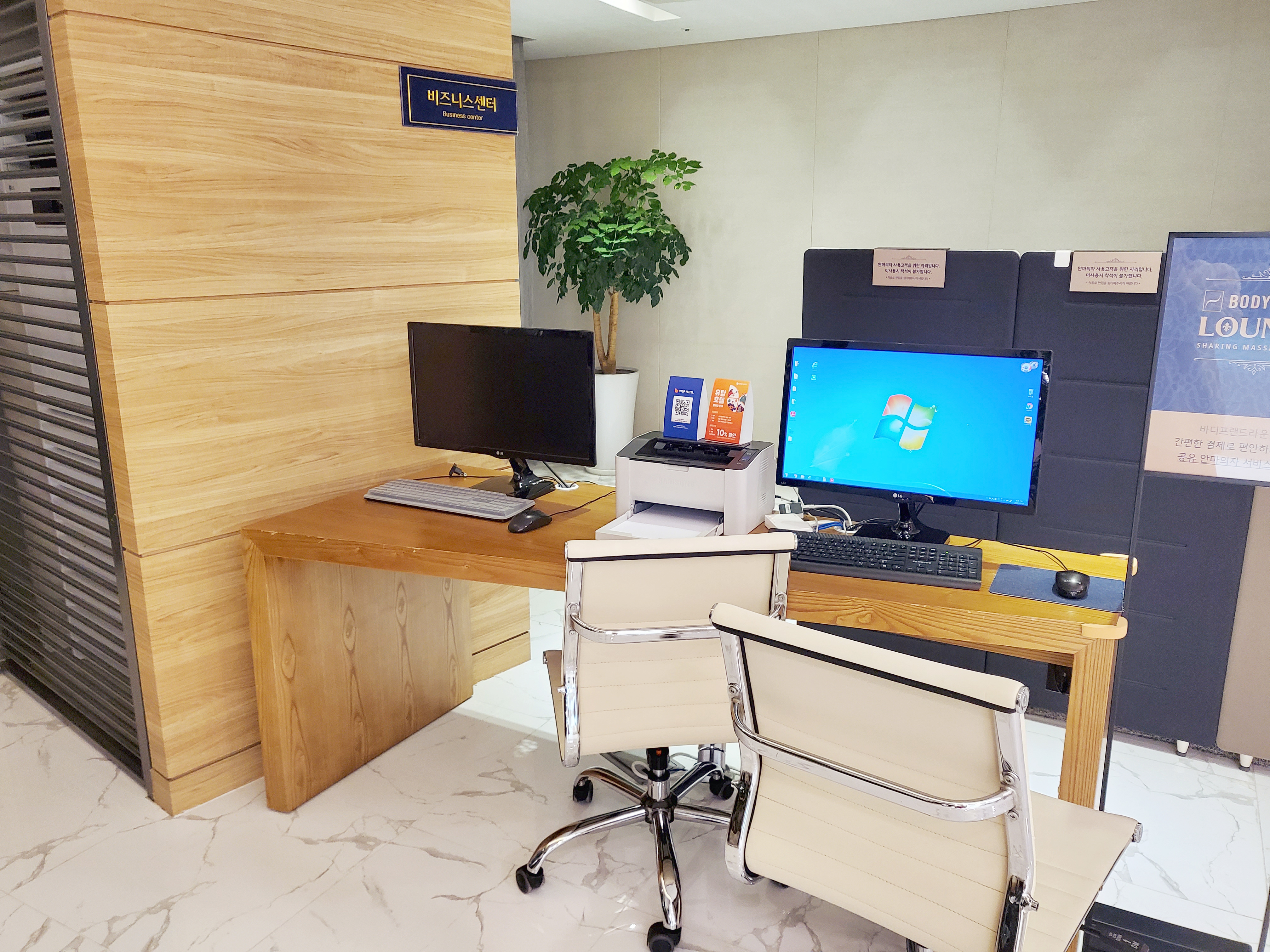 비즈니스코너와 안마의자기계(유료)도 있다